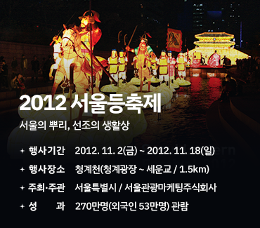 - 장소: 청계천(청계광장~모전교), 광화문광장, 서울광장, 우이천