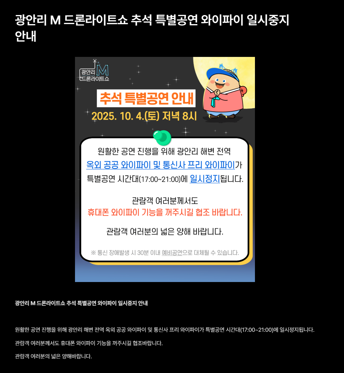 2025년 10월 4일 광안리 M 드론라이트쇼 추석 특별공연 정보!🌕